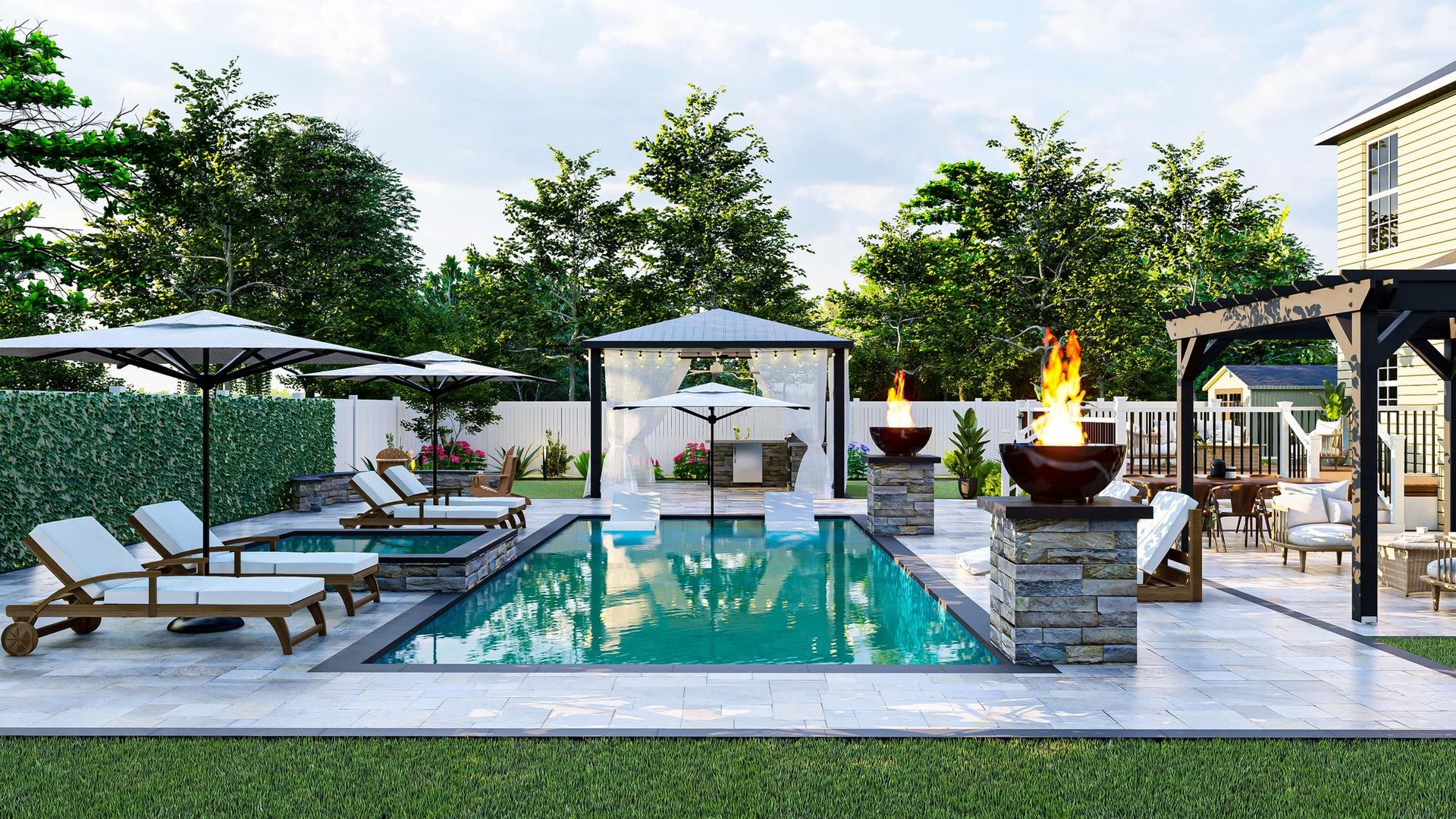 Complete your backyard paradise with outdoor kitchens, fire pits, patios, and pergolas. Our outdoor living designs are made to complement your new or existing pool.